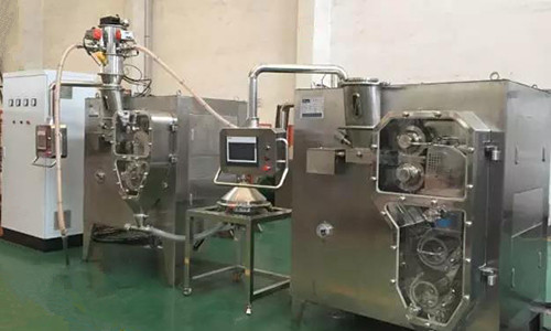 LG系列干法制粒機是將混合好的物料,通過提升機加入進料系統,通過輸送系統將物料輸送到由液壓施高壓的兩個壓輪之間,通過壓輪將物料壓成合適硬度的薄片,通過破碎系統將薄片切制成合適大小的小塊,經過兩級整粒系統將小塊制成要求的顆粒,完成制粒過程。