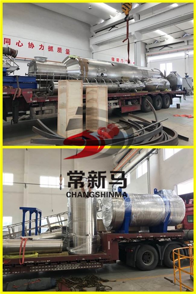 土耳其某大型民營化工企業(yè)訂購的用于二氯異氰尿酸干燥用的HZG1.4*15回轉窯干燥機組也在同步裝車: