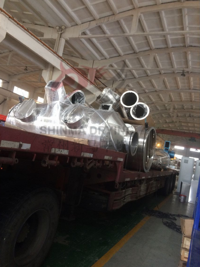 ? 干燥主塔至旋風(fēng)分離器的彎頭采用一次成型304不銹鋼光潔管道制作,防止結(jié)料現(xiàn)象,并采用卡箍快開的方式連接,方便清洗時的污水排放;